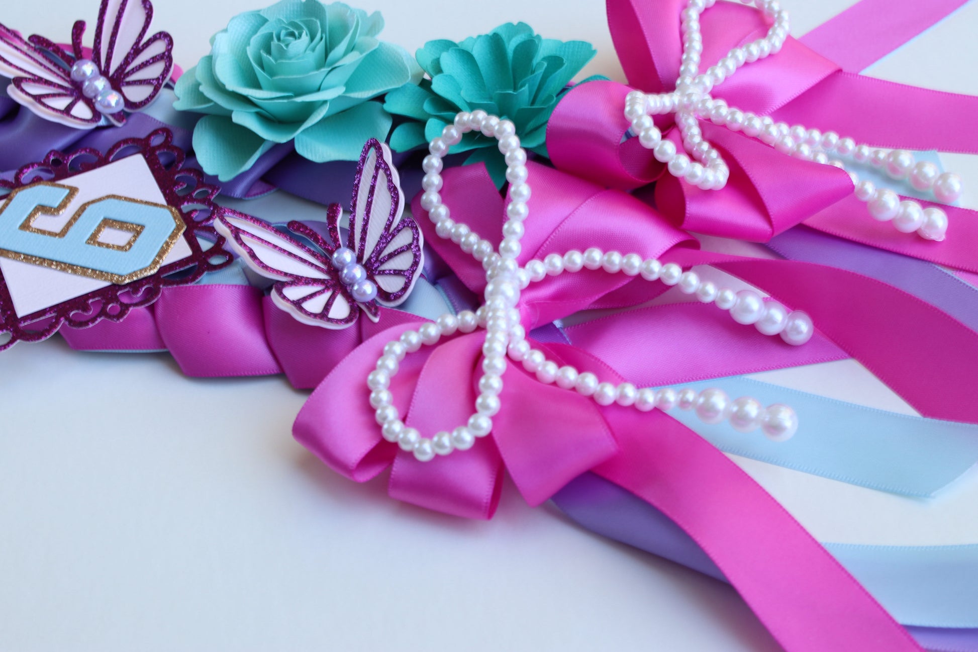 Celebrate your kindergartner’s big milestone with this handmade tri-color lei, measuring 50". Designed with paper flowers, cardstock butterflies, and the year 2026, it’s finished with ribbon bows and a pearl bow on each end for an elegant touch.