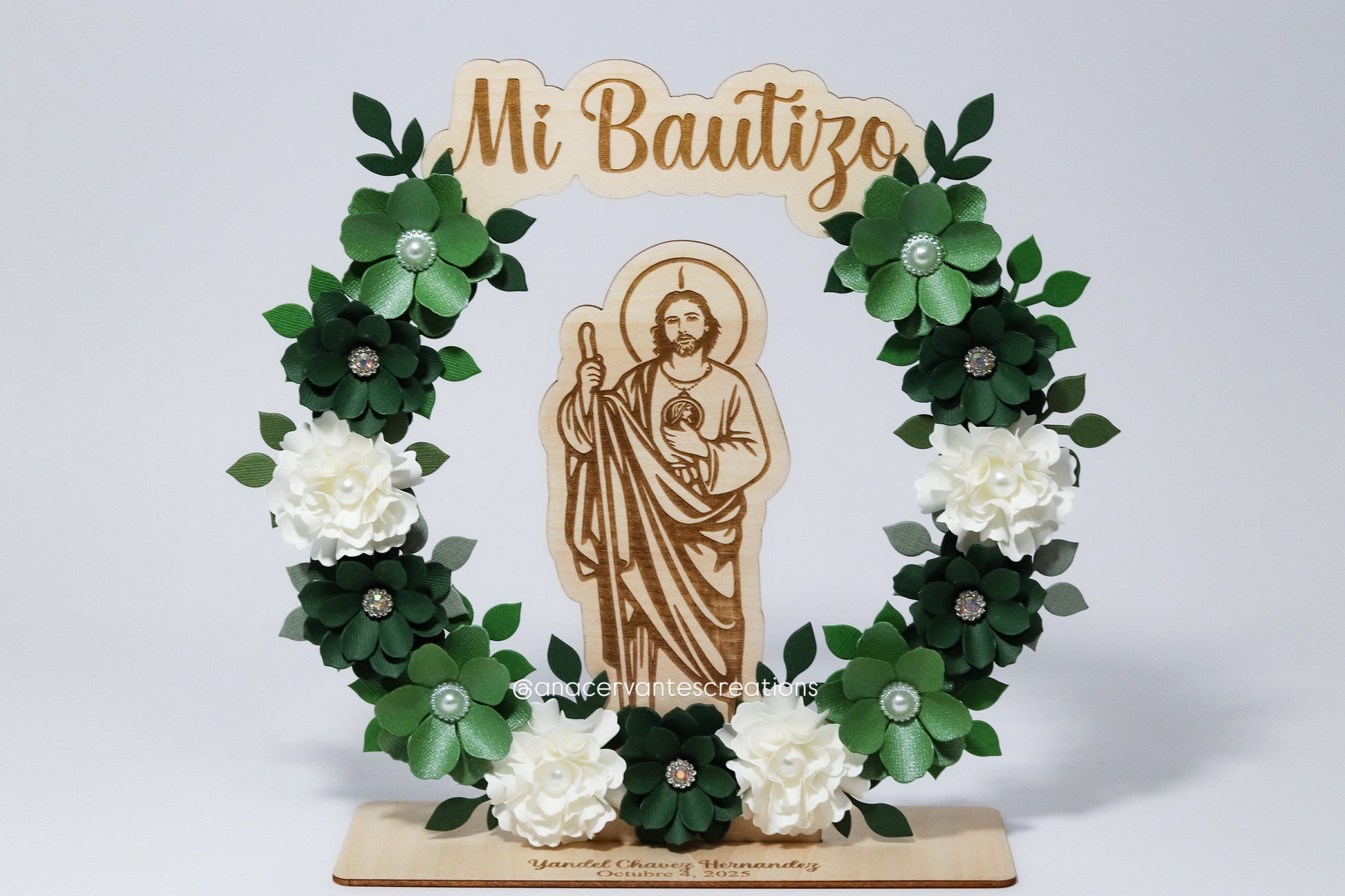 Recuerdos/Centros de Mesa Para Bautizo San Judas Tadeo (Verde)