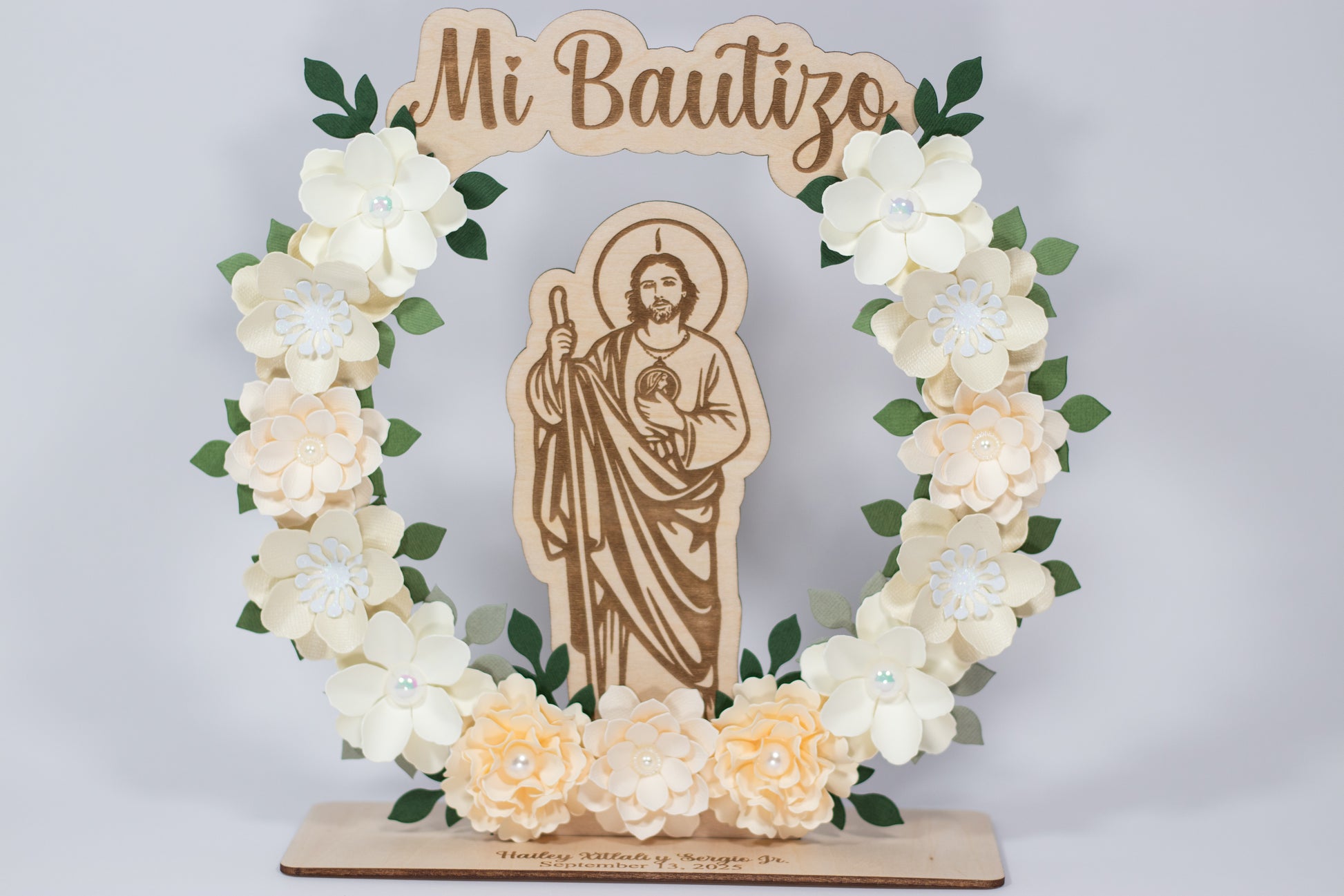 Recuerdos/Centros de Mesa Para Bautizo San Judas Tadeo (Crema)