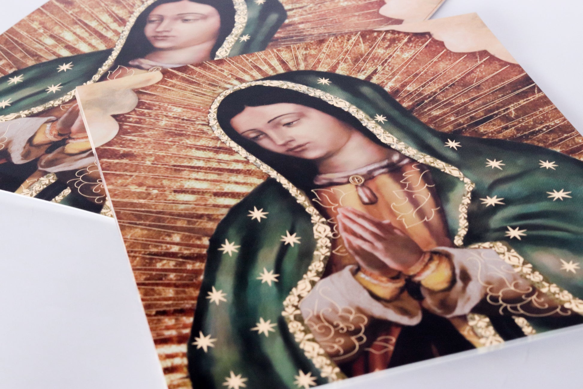 These exquisite religious prints are crafted with exceptional detail and reverence, making them a beautiful addition to any home, altar, or devotional space. Each image is professionally printed on high-quality, heavyweight cardstock and finished with a protective wax-like coating that enhances the colors while adding soft sheen and durability. Elegant gold accents highlight key elements of the artwork, creating a luminous, timeless finish.